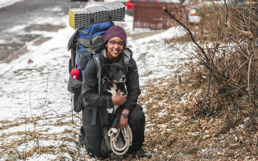 The 28-year-old spent 69 days hiking the rough terrain from Eastern Terminus in Sturgeon Bay, Michigan, to the Western Terminus in St. Croix Falls, Wisconsin. Ford, her 60-pound pack, and her canine friend Diggins spent most of the hike time outdoors. They walked 16.5 miles on average with daily temperatures falling 30 below zero at times.
