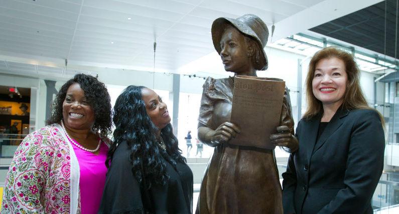 “Monuments inform us of our past, but they also lead us toward our future,” Amanda Matthews, who made the statue, said during the ceremony. “Alice Dunnigan envisioned a future of equality and she dedicated her life to that vision as a teacher, a journalist, an editor and a champion for civil rights and women. She is why we’re all here today, to continue to support that vision.”