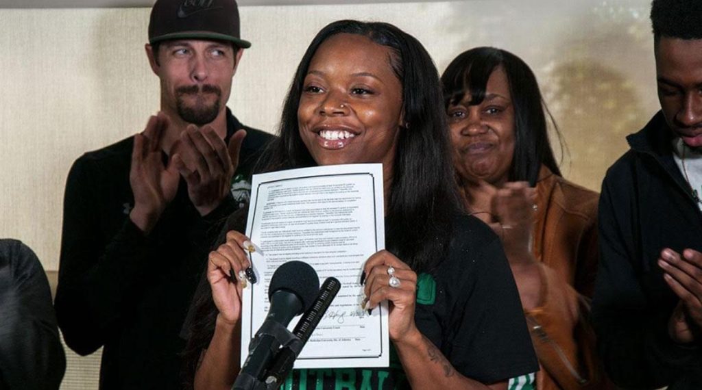 After receiving six college football scholarship offers, Antoinette “Toni” Harris has signed a letter of intent to play football for Missouri’s Central Methodist University and made history while doing it. The 22-year-old is now “the first female skill position player to sign a letter of intent to play college football on a scholarship,” Central Methodist said on its website. She will also become the school’s first female football player.