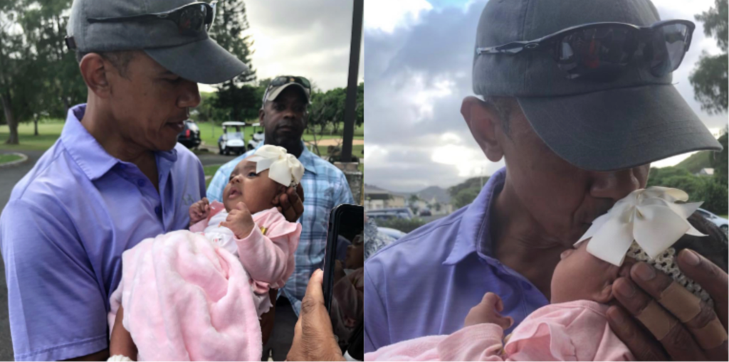 After playing golf in his hometown of Hawaii, Forever President Barack Obama greeted an anxious crowd and was immediately drawn to the youngest fan present.