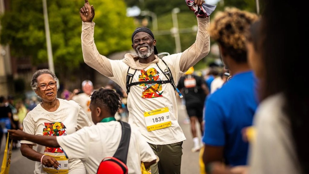 This past weekend, nearly two thousand people gathered at Kanawha Plaza in Richmond, Virginia, for the third annual race. The plaza is historically known for being the place where the first ship carrying enslaved people docked in 1619. Hounsou led the race, hoping to bring people together for healing and reclamation. Sharing historical facts about the site throughout the event, Hounsou spoke about the importance of the race in helping people of the diaspora to reclaim a shared identity.