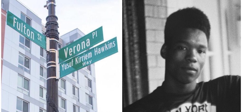 The renaming ceremony took place this week in the Bedford-Stuyvesant neighborhood Hawkins grew up in on what would have been his 48th birthday. The community came together to celebrate Hawkins and to watch the corner of Verona Place and Fulton Street officially become Yusuf Kirreim Hawkins Way.