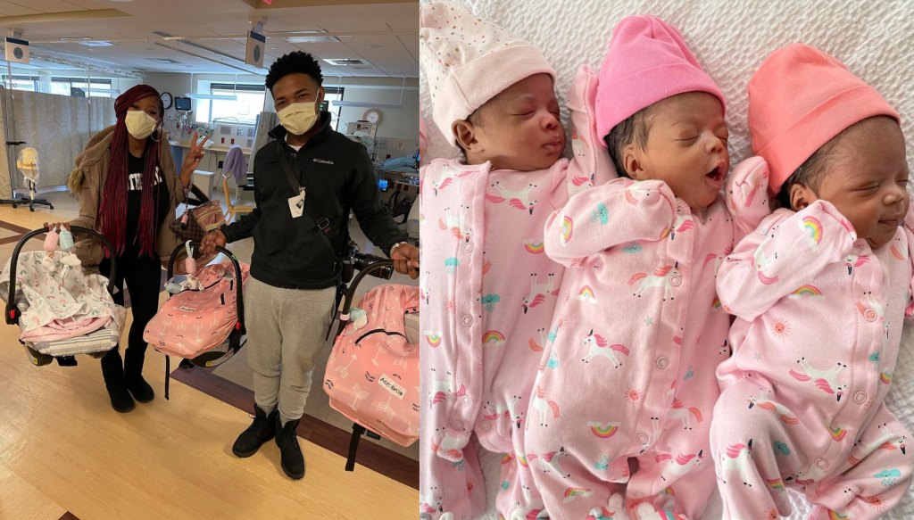 The cuteness is amplified by three and we’re so happy for this family and their three bundles of Black girl magic!