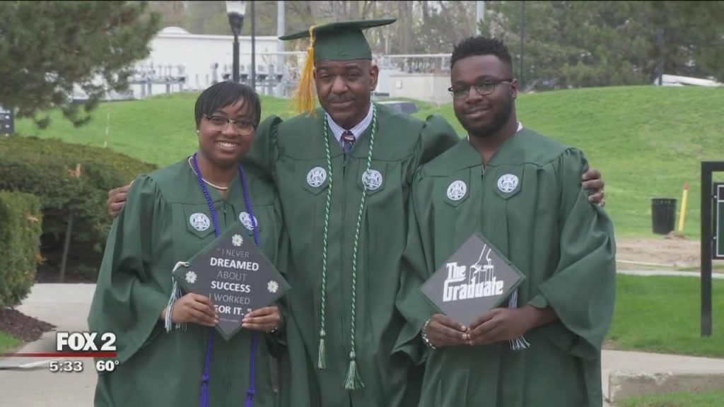 Father, Pat, his son Ryan and his daughter Regan are walking across the stage as college graduates of Eastern Michigan University on the same day. It’s an academic milestone they’re proud to share as a family.