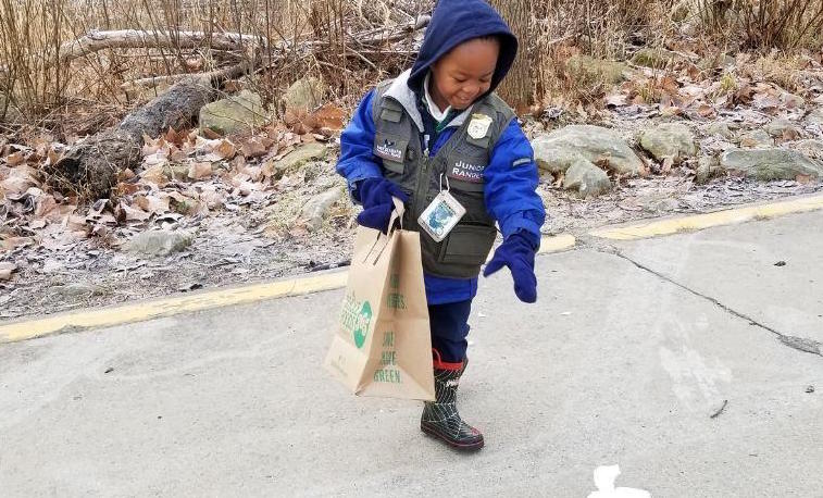 The Comi family frequently visit the park, which also led Charlie to participate in their Junior Park Ranger program last September. Wearing a vest with his Junior Park Ranger badge proudly displayed and carrying a brown paper bag, Charlie and his mother have begun to patrol the park picking up various items that people have carelessly left behind.