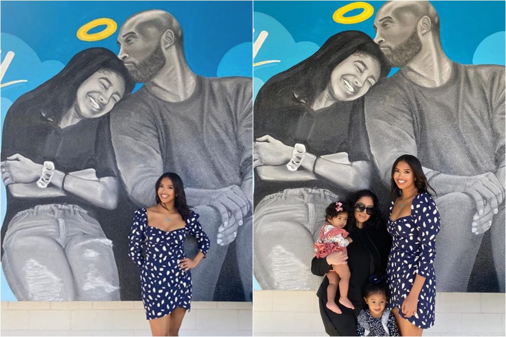 This week, Vanessa took to social media to post a picture of she and Kobe’s eldest daughter on the night of her winter formal. Natalia Bryant beamed in her dress and heels as she posed in front of a mural honoring her father and sister. Vanessa captioned a second photo of she and the kids, Natalia, Bianka and Capri in front of the mural with the lyrics of Nat King Cole’s “Smile.”