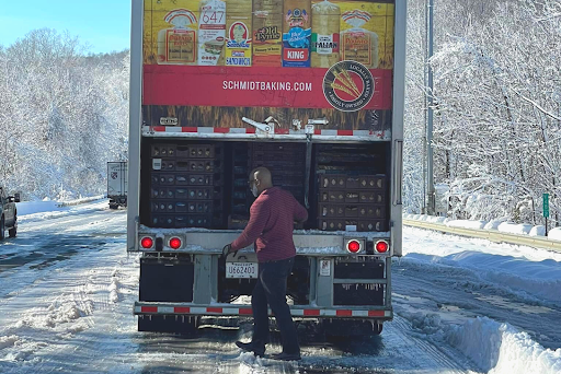 Earlier this month, a snowstorm plowed through the east coast, leaving drivers on Interstate 95 in Virginia stranded, the snow shutting down nearly 50 miles of traffic. One of those drivers was Ron Hill, a Maryland truck driver who was making a delivery for his long time client, Schmidt Baking Company.