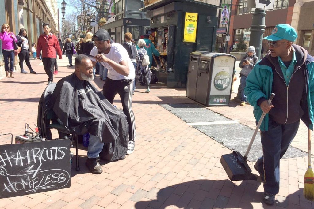 He hopes by cutting hair in the middle of street that it will help highlight the needs of the homeless population and inspire others to do something about it. As a barber with 10 years of experience, Jones said: “A lot of people ask me hey when will you stop. I will never stop I’m invested. My heart is invested. I never took barbering so serious until now.”