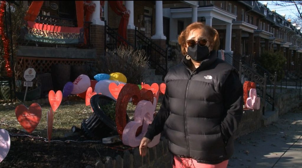 Marjorie McCollough-Jackson took an unconventional approach to Valentine’s Day by also including facts for Black History Month. On the corner of 4th and Varnum NW is where you can find her front yard filled with pink and red hearts with one huge heart that reads, “Did you know these Black history facts?”